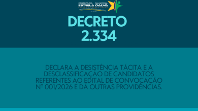 Clique aqui para BAIXAR O DECRETO Nº 2.334, de 30/01/2026 (Declara a desistência tácita e a desclassificação de candidatos referentes…